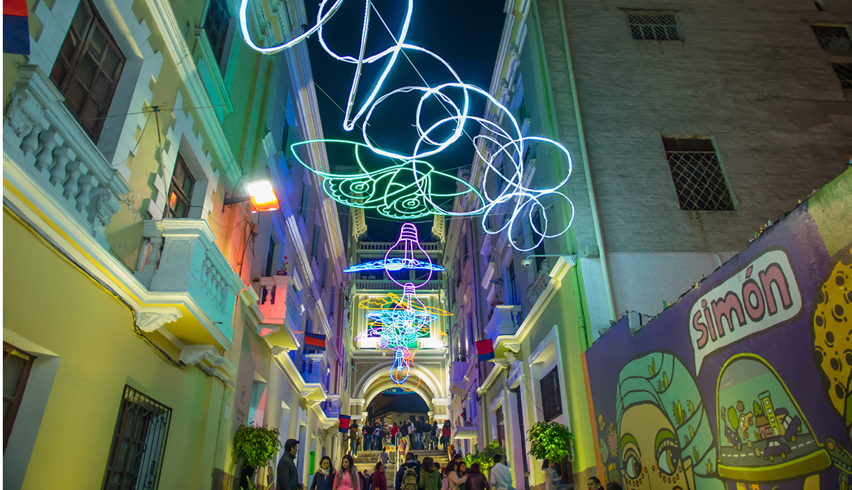 На холме Панесилио, где стоит огромная металлическая статуя Крылатой Деве Марии, в темное время суток тоже царит особенная атмосфера. С высоты холма открывается панорама на колониальную часть города. Если вам повезет и там будет парень с дроном, который за деньги делает фотографии и видео с воздуха, не пожалейте на них 10 долларов, и у вас останутся отличные фотокарточки на память.